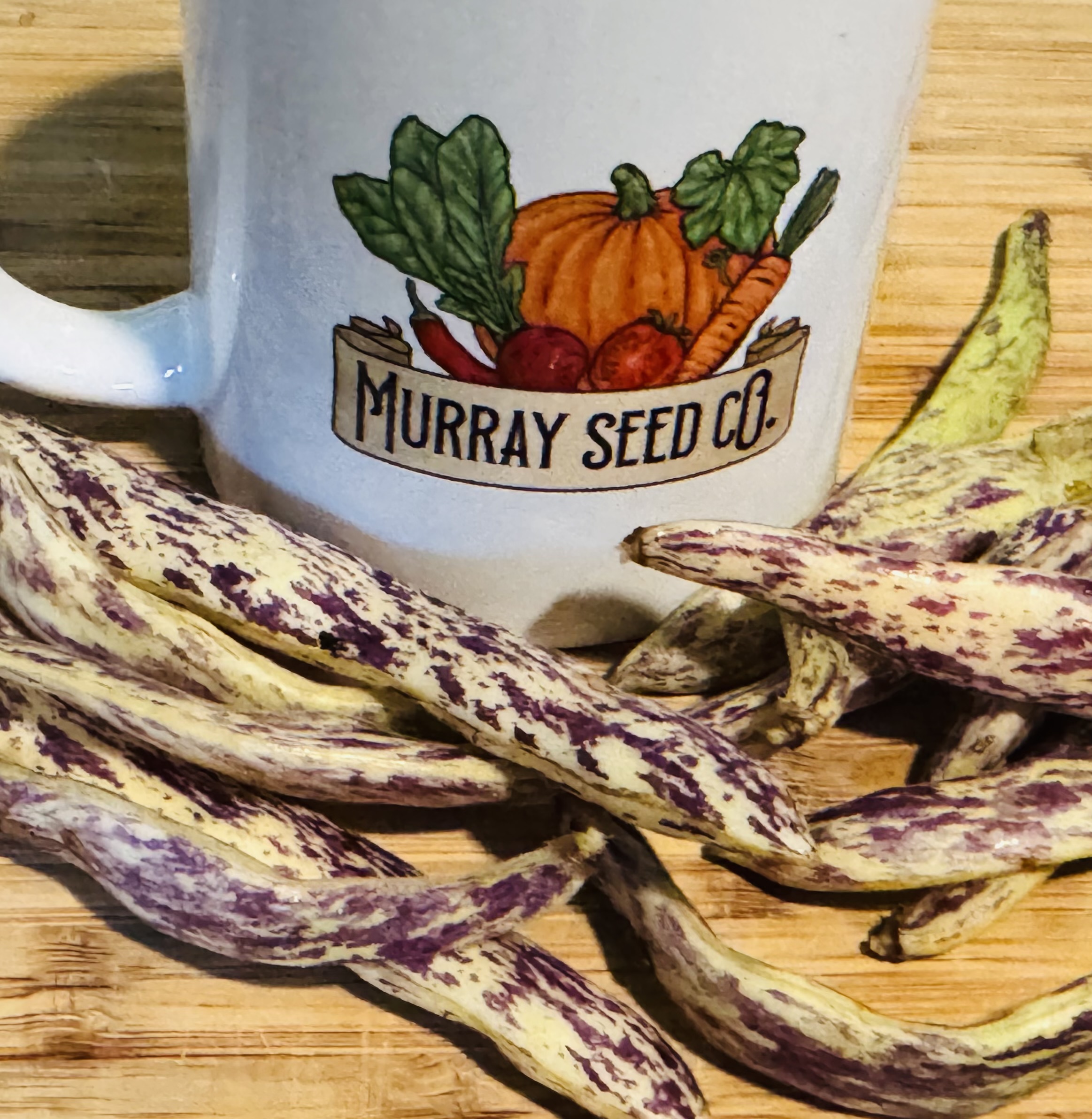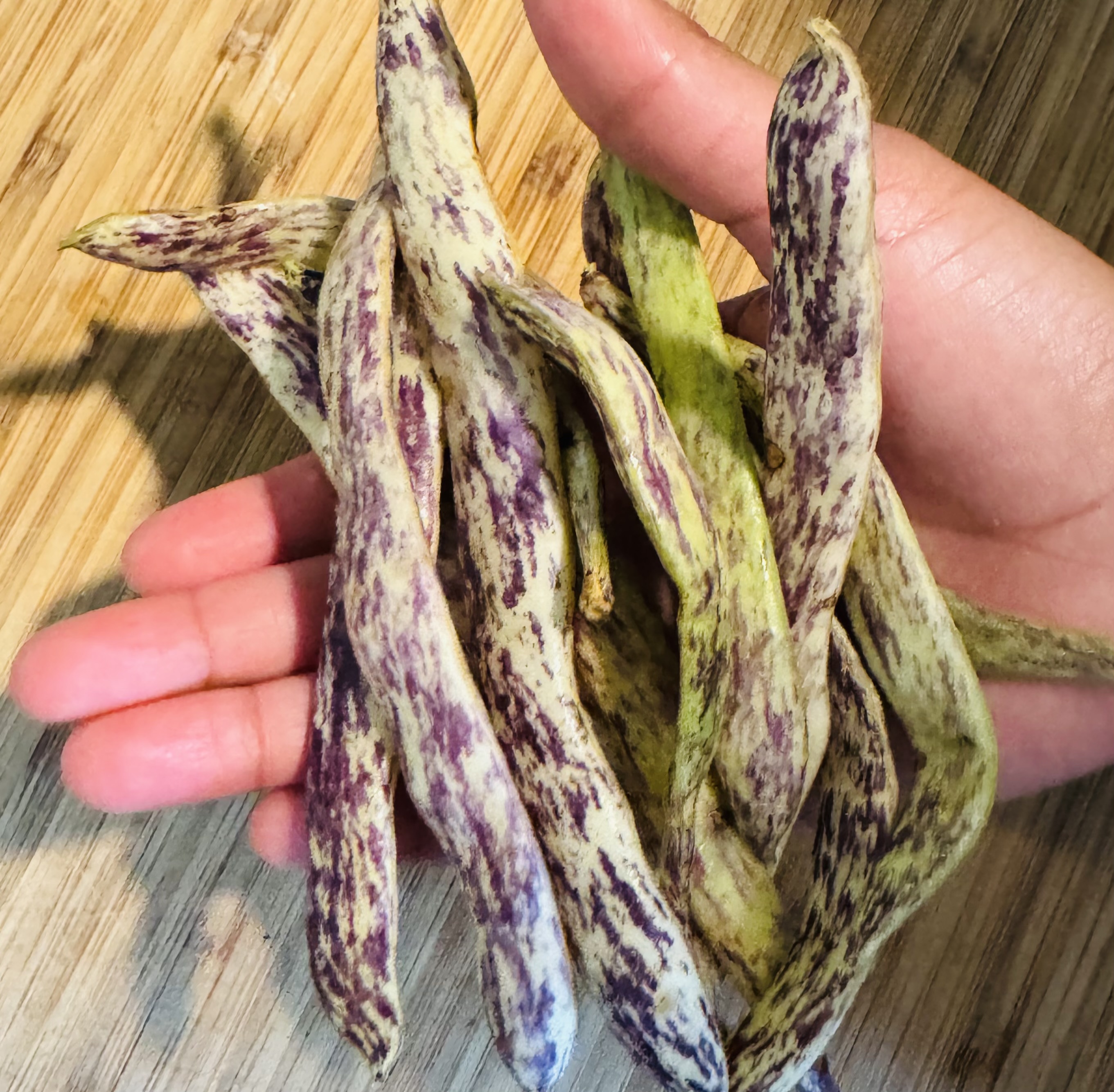 Dragon’s Tongue (aka Dragon Langerie) is one of the most unique and beautiful beans! This is a Dutch heirloom that dates back to at least the 19th century. It’s a compact, productive, bush variety that produces 6-7 inch cream-colored pods with purple streaks. They have fantastic flavor and are perfect fresh, in salads, or cooked (though they don’t keep their color when cooked).
