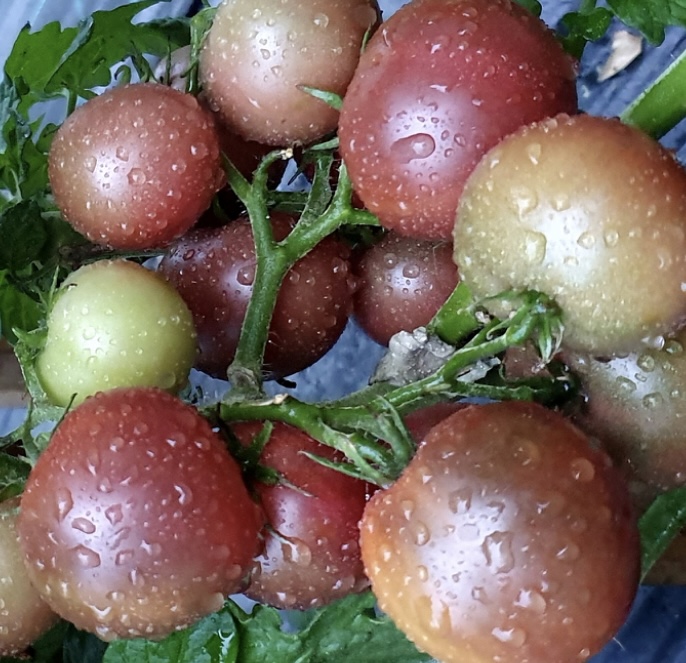 Dwarf Velvet Night is a beautiful and tasty dwarf tomato variety! These plants grow to around 3 feet and produce giant clusters of beautiful, round, dusky-purple tomatoes that range from 1-3 ounces. The fruit have a well balanced flavor profile, both earthy and sweet! Dwarf Velvet Night is a productive, unique, and delicious variety and should definitely earn a place in your garden!