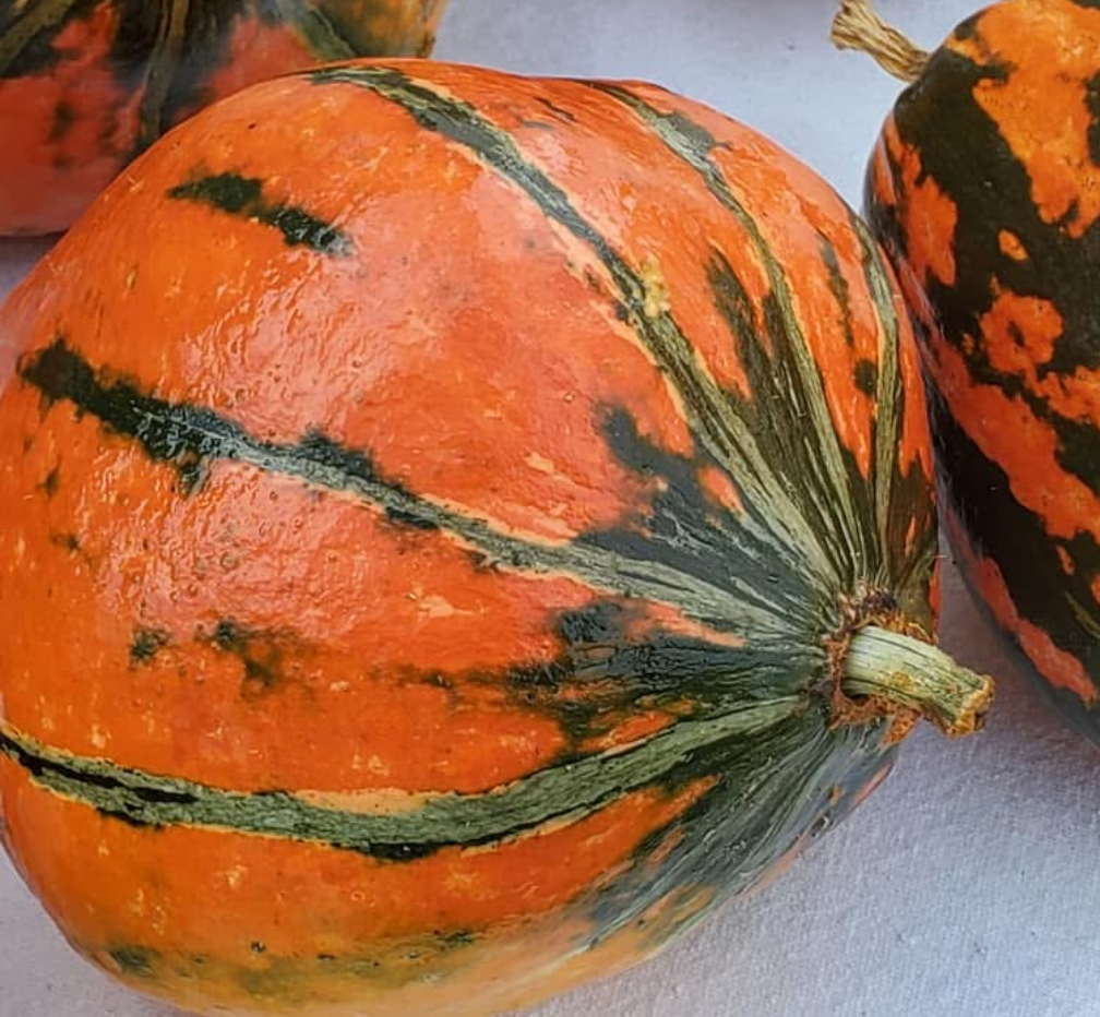 The Lakota Squash is a beautiful, orange and green, teardrop-shaped winter squash variety! They were first grown by the Native Americans of the Missouri Valley, including the Lakota. They were first grown and documented by European American settlers around the 1820’s at Fort Atkinson, in Nebraska. They were grown for years by a woman named Martha Newman and eventually donated to the University of Nebraska by a man who went by the name of A.G.. Somewhere in between the first documentation and when they arrived at the university of Nebraska, there was an accidental cross-pollination (probably with a Hubbard Squash). The result was extremely tasty and desirable and was then stabilized D.P. Coyne at University of Nebraska. Lakota Winter Squash are rare, beautiful, and delicious and store extremely well!
