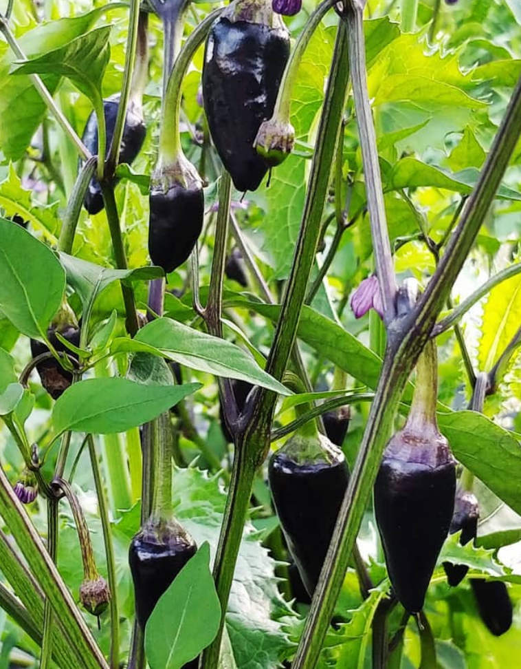 This is the rare and beautiful purple version of the jalapeno! Compact plants produce tons of 2 1/2 inch long peppers that ripen from green, to deep purple, and then finally to red as they mature. They’re fantastic at all stages, but are spicier and have a more complex flavor profile when they are fully ripe. Purple Jalapenos are pretty enough to be an ornamental, but are delicious enough for any culinary use!